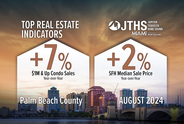 MIAMI — Palm Beach County existing condominium $1M & up transactions increased year-over-year in August 2024, according to statistics released by the MIAMI Association of Realtors (MIAMI) and the MIAMI Southeast Florida Multiple Listing Service (SEFMLS).