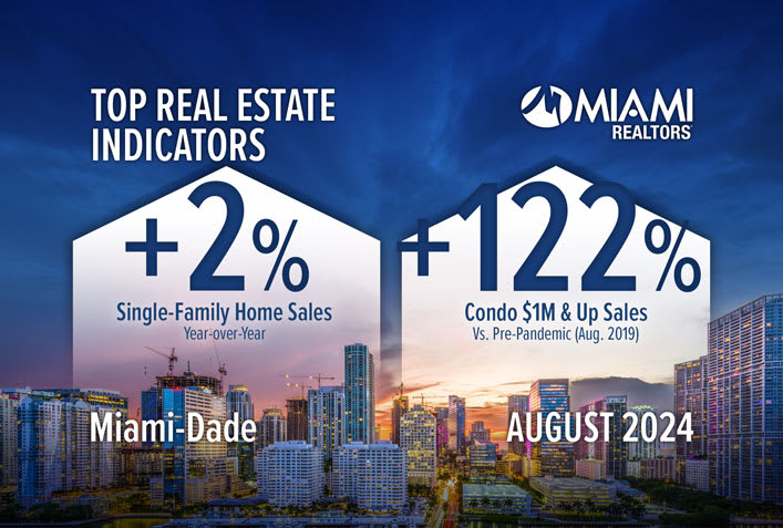Miami single-family sales have posted gains in eight of the last 10 months. Condo $1M & up transactions surged 122.2% versus pre-pandemic August 2019.